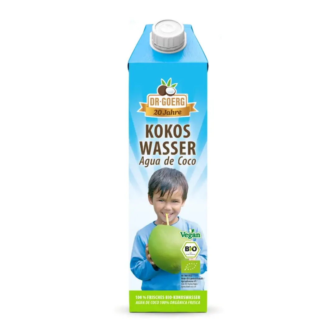 Apa de cocos Dr. Goerg este printre putinele ape de cocos bio de pe piata care nu contin acid ascorbic pe post de conservant, avand in compozitie 100% apa de cocos.