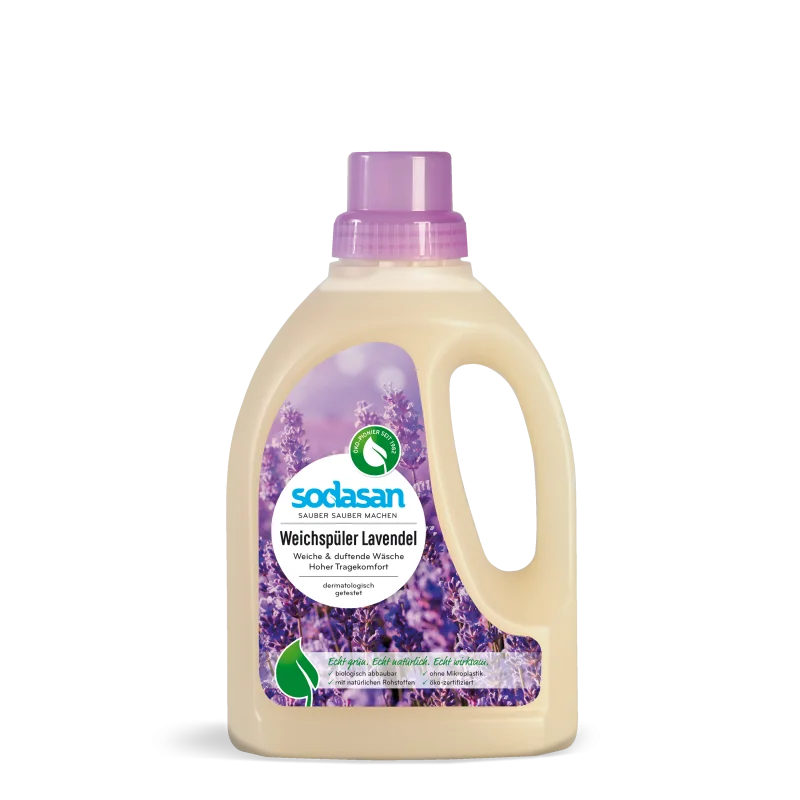 Balsamul organic de lavanda SODASAN este un complement ideal pentru detergentii din aceeasi gama. Masina de spalat elimina fiabil reziduurile de detergent si lasa rufele curate si moi. Protejeaza fibrele si le face mai usor de calcat. Nu contine coloranti si conservan?i. Parfumul armonios de lavanda vine de la uleiurile pure esentiale si organice.