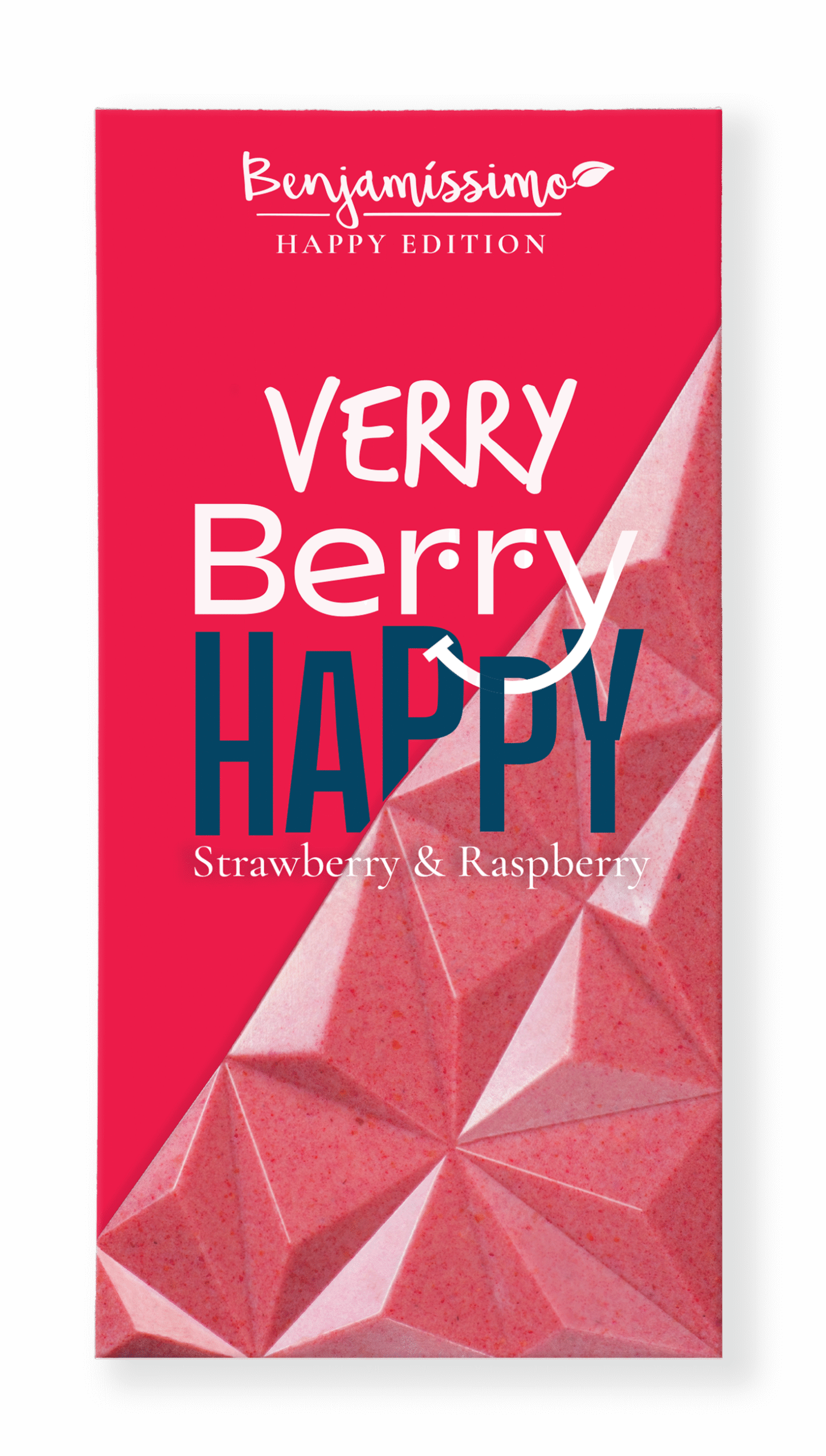 Ciocolata cu capsuni si zmeura bio, 60g, Benjamissimo
