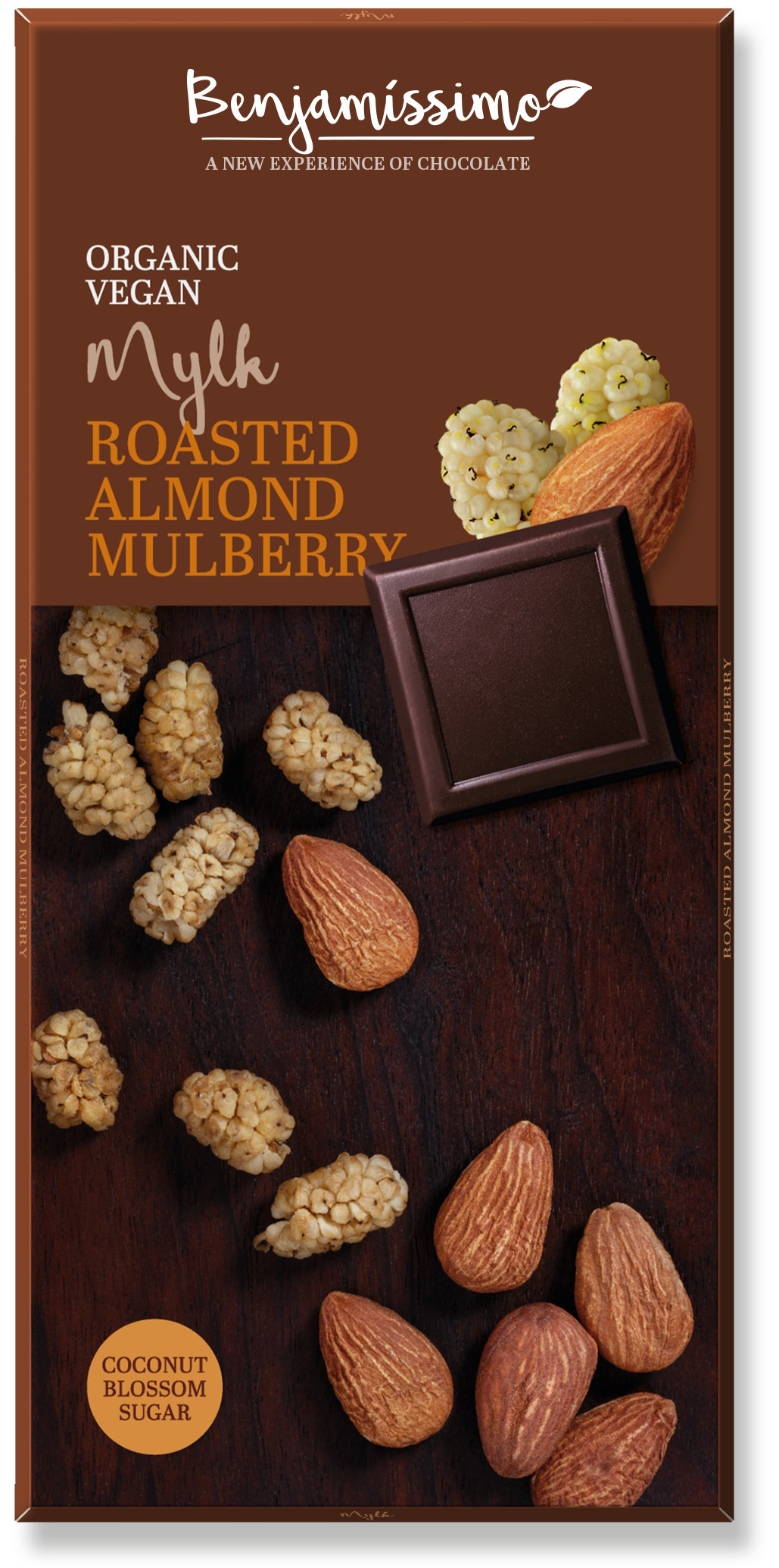 Ciocolata cu migdale si dude bio, 70g, Benjamissimo