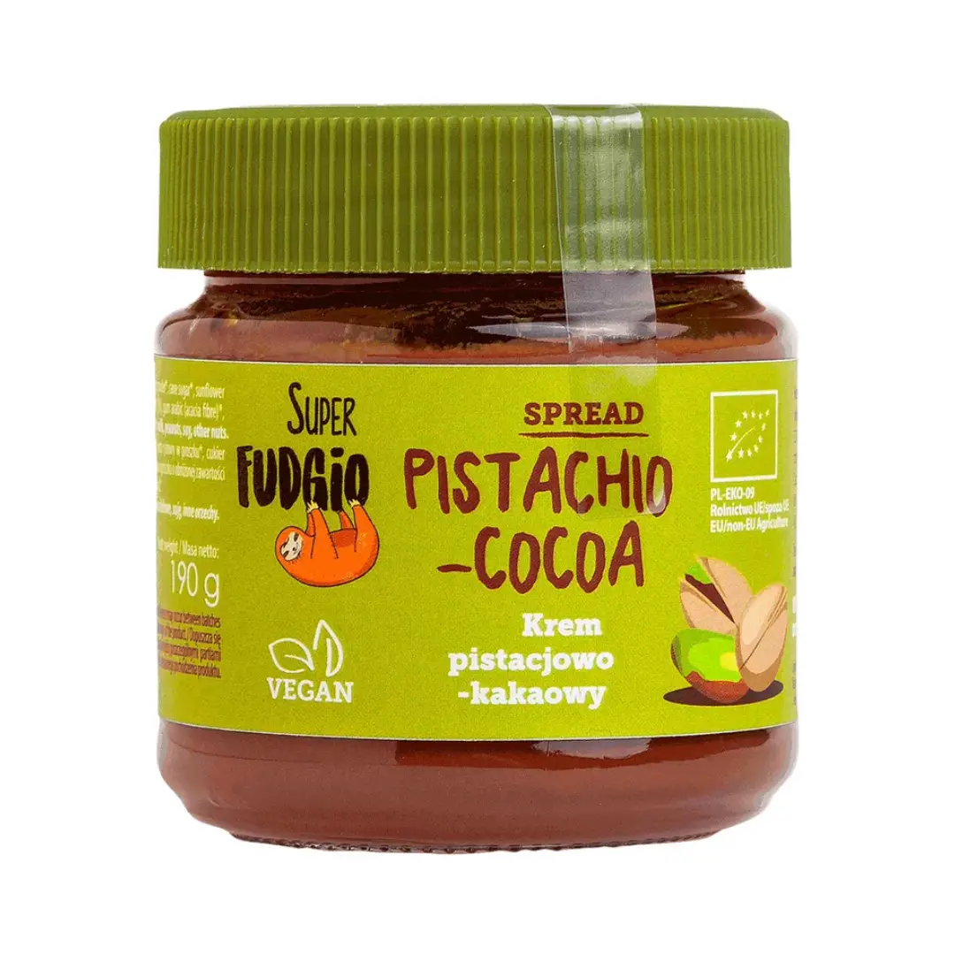 Ingrediente: zahar din trestie*, ulei de floarea soarelui*, pudra de cocos*, pasta de FISTIC* 10%, cacao degresata* 5%, guma arabica (firbe de acacia), emulsifiant: lecitina din floarea soarelui*.