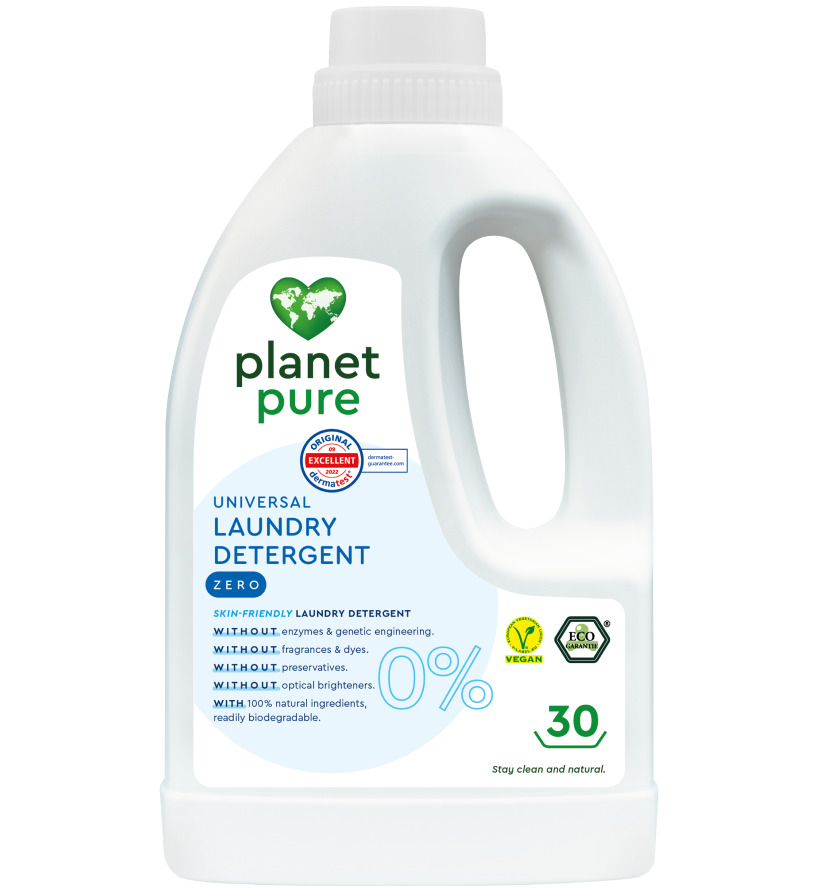 Detergentii Planet Pure sunt certificati bio de Certisys, nu contin ulei mineral, ulei de palmier si nu sunt realizati prin tehnologii de inginerie genetica. Ambalajul este realizat in proportie de 84% din plastic reciclat.