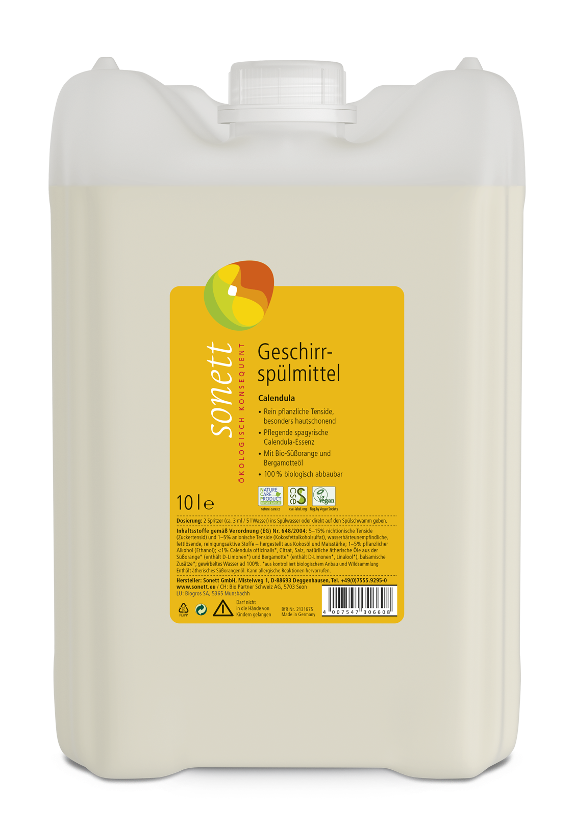 Detergentul de vase Sonett este un produs concentrat si, prin urmare, foarte economic in utilizare. Agentii tensioactivi utilizati, sulfatul de alcool gras de cocos si surfactantul din zahar, sunt 100% biodegradabili si, in aceasta combinatie, foarte prietenosi cu pielea.