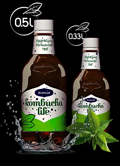 Ingrediente: infuzie de ceai (apa filtrata , fructe de aronia 0.6%, frunze de ceai verde 0.2%, fructe de macese 0.6%), zahar, culturi de kombucha. Nimic altceva!