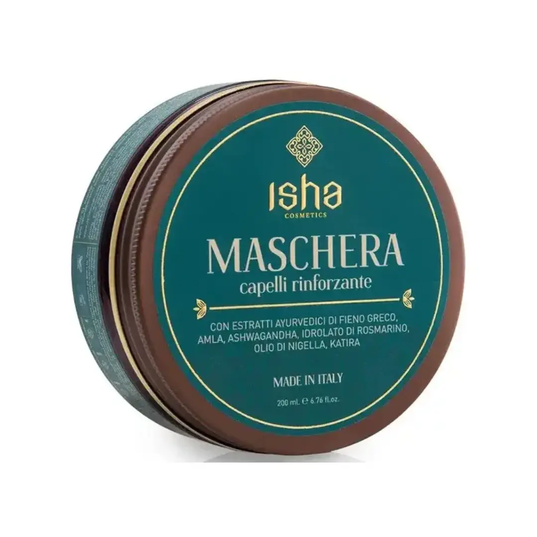 Masca de intarire a parului ISHA contine extracte ayurvedice de schinduf, amla, ashwagandha, hidrosol de rozmarin, ulei de nigella, katira.