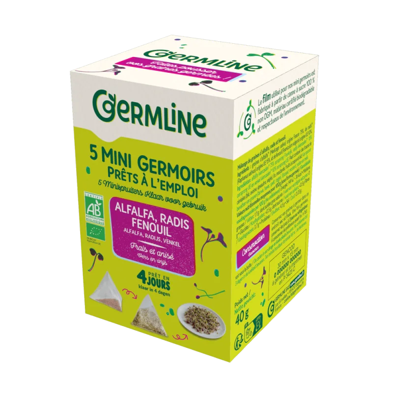 Mini germinatoare cu seminte de alfalfa gata de folosit! Acest kit complet contine 5 mini germinatoare biodegradabile pre-umplute cu seminte de alfalfa masurate cu atentie, care va vor permite sa obtineti usor si rapid muguri proaspeti si crocanti pentru a aduce diversitate tuturor mancarurilor dumneavoastra