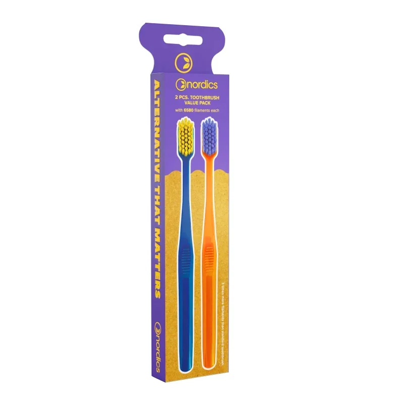 Suntem mandri sa prezentam un nou tip de periuta de dinti premium care combina calitatea de experta a igienei dentare cu durabilitatea. Manerul ergonomic este fabricat din PLA (acid polilactic), care este un tip de bio-plastic reciclabil, iar filamentele sunt fabricate din nailon DuPont de cea mai buna calitate. Capul mic include un incredibil numar de 6580 de peri care va vor lasa cu o senzatie uimitoare de curatenie. Periutele de dinti standard au pana la 2000 de peri, ceea ce face ca peria Nordics Premium Brush sa fie de trei ori mai eficienta. Intregul ambalaj este reciclabil si biodegradabil, asa ca putem face ceva grozav si pentru planeta.