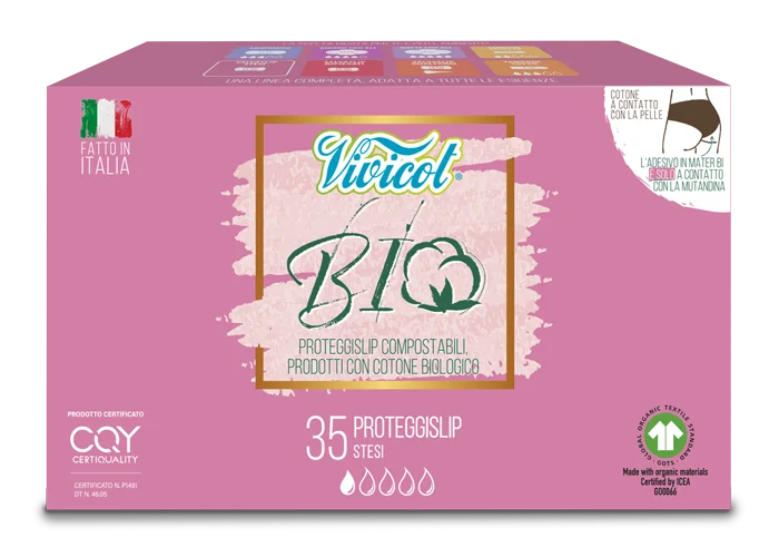 Linia Vivicot Bio include o gama variata de produse hipoalergenice pentru igiena intima. Produsele sunt realizate in intregime (interior + exterior) din bumbac certificat GOTS (Global Organic Textile Standard).