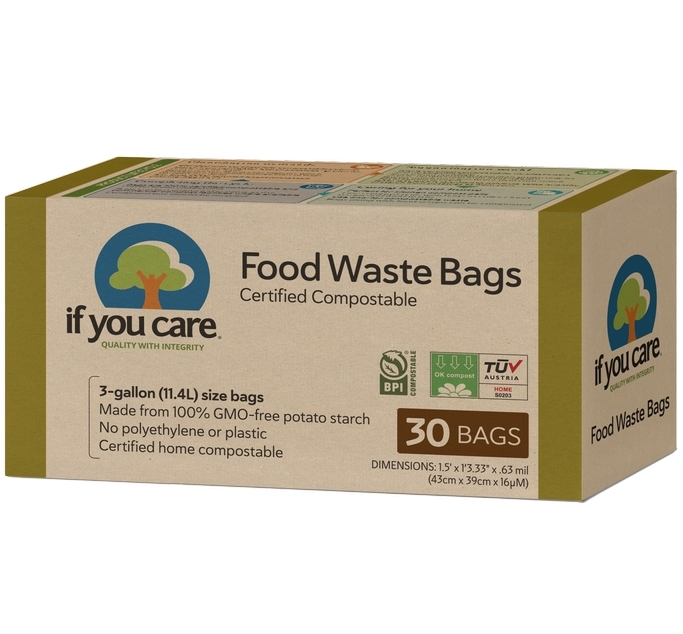 Sacii menajeri If You Care sunt fabricati din amidon de cartofi din cartofi fara OMG amestecati cu un polimer certificat, complet compostabil. Nu se adauga plastifianti.