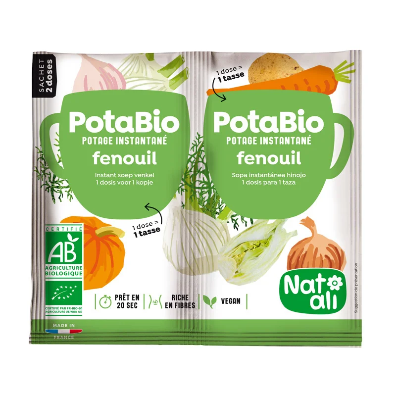 Supa instant cu fenicul NAT-ALI ofera toate beneficiile plantelor si legumelor organice, fiind in acelasi timp bogata in fibre in mod natural.