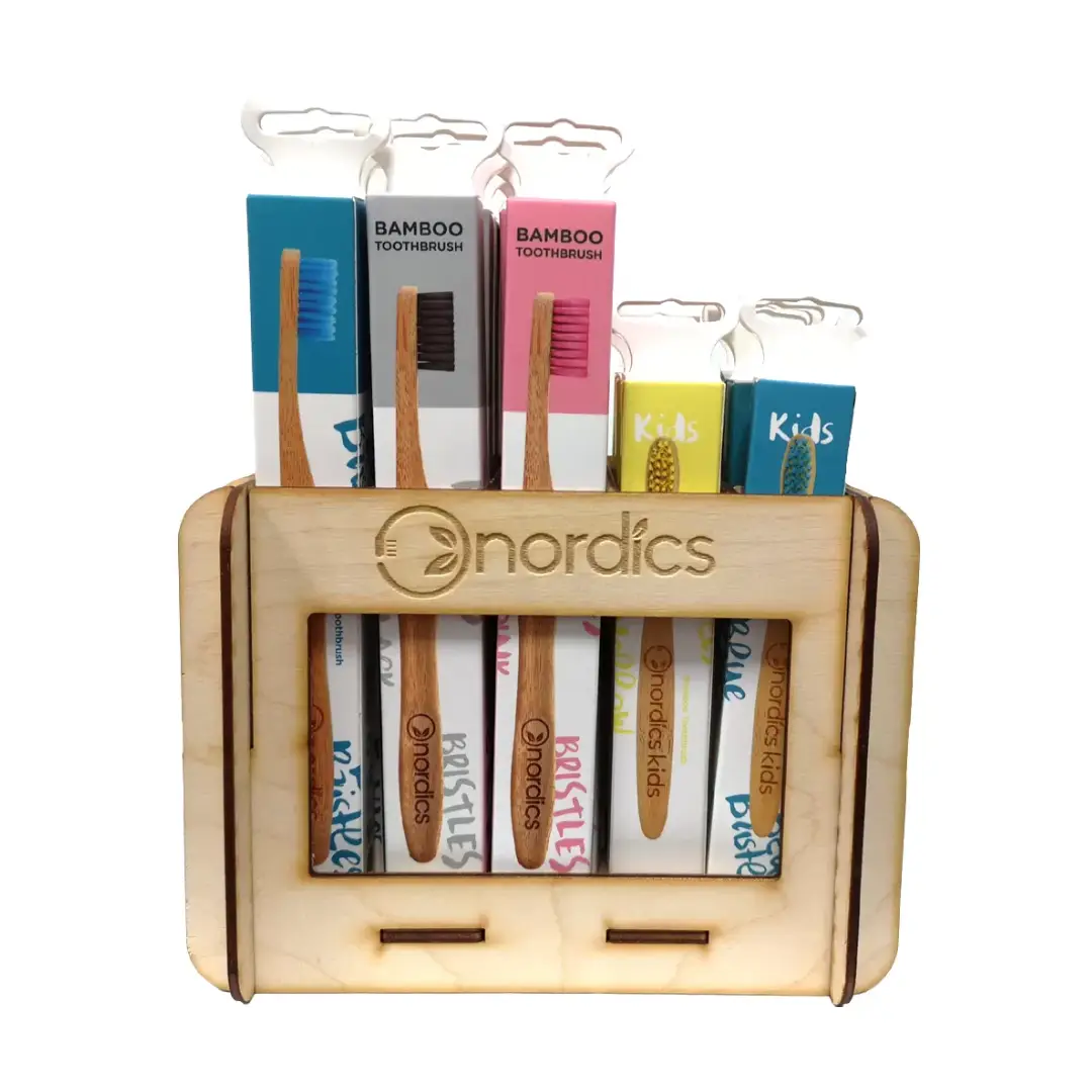 Suportul se ofera doar impreuna cu achizitia a minim 20 periute de dinti din gama Nordics, sau sa fi avut o achizitie de minim 20 periute Nordics. Este interzisa plasarea altor periute pe suport decat cele din gama Nordics.